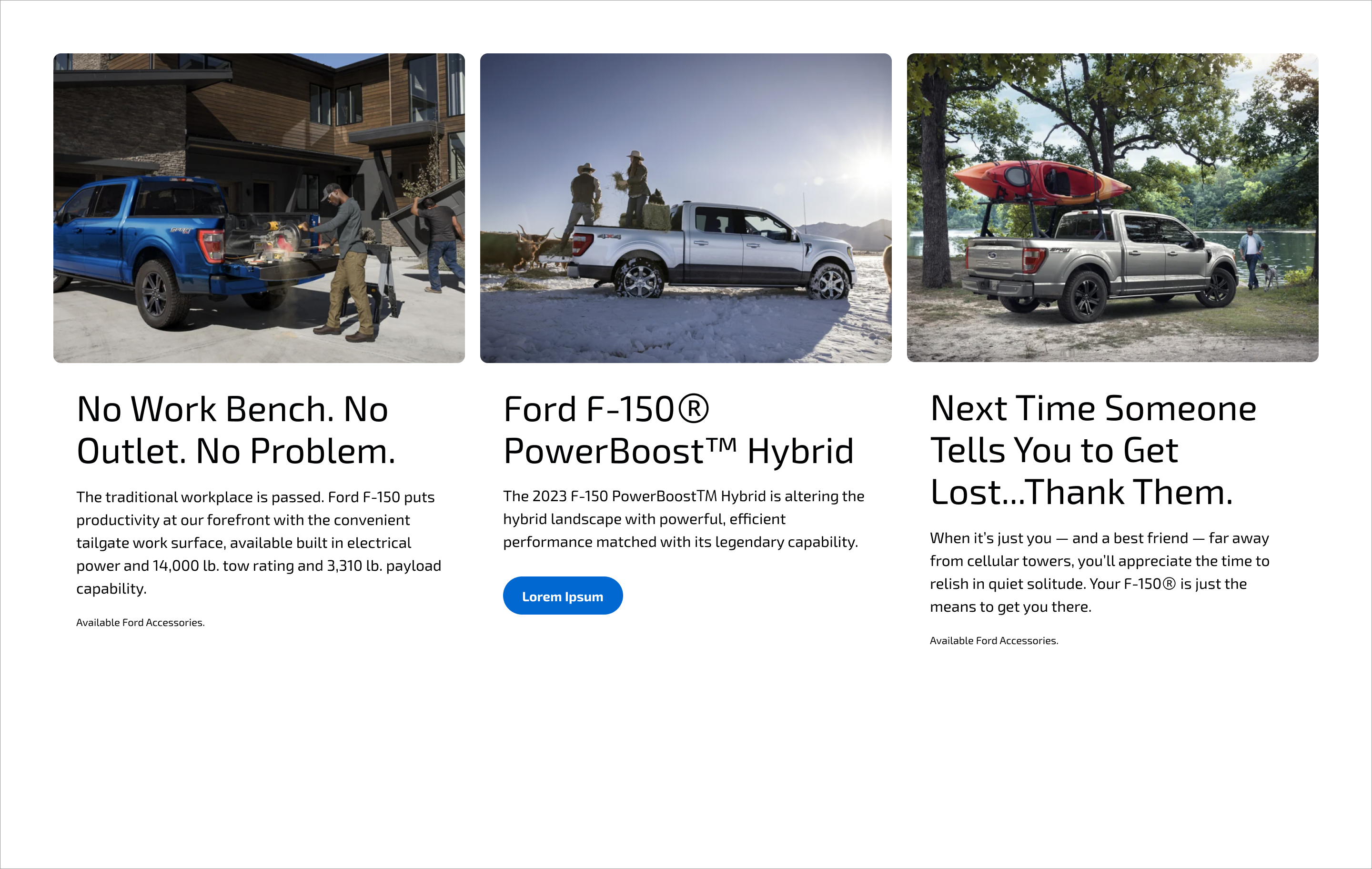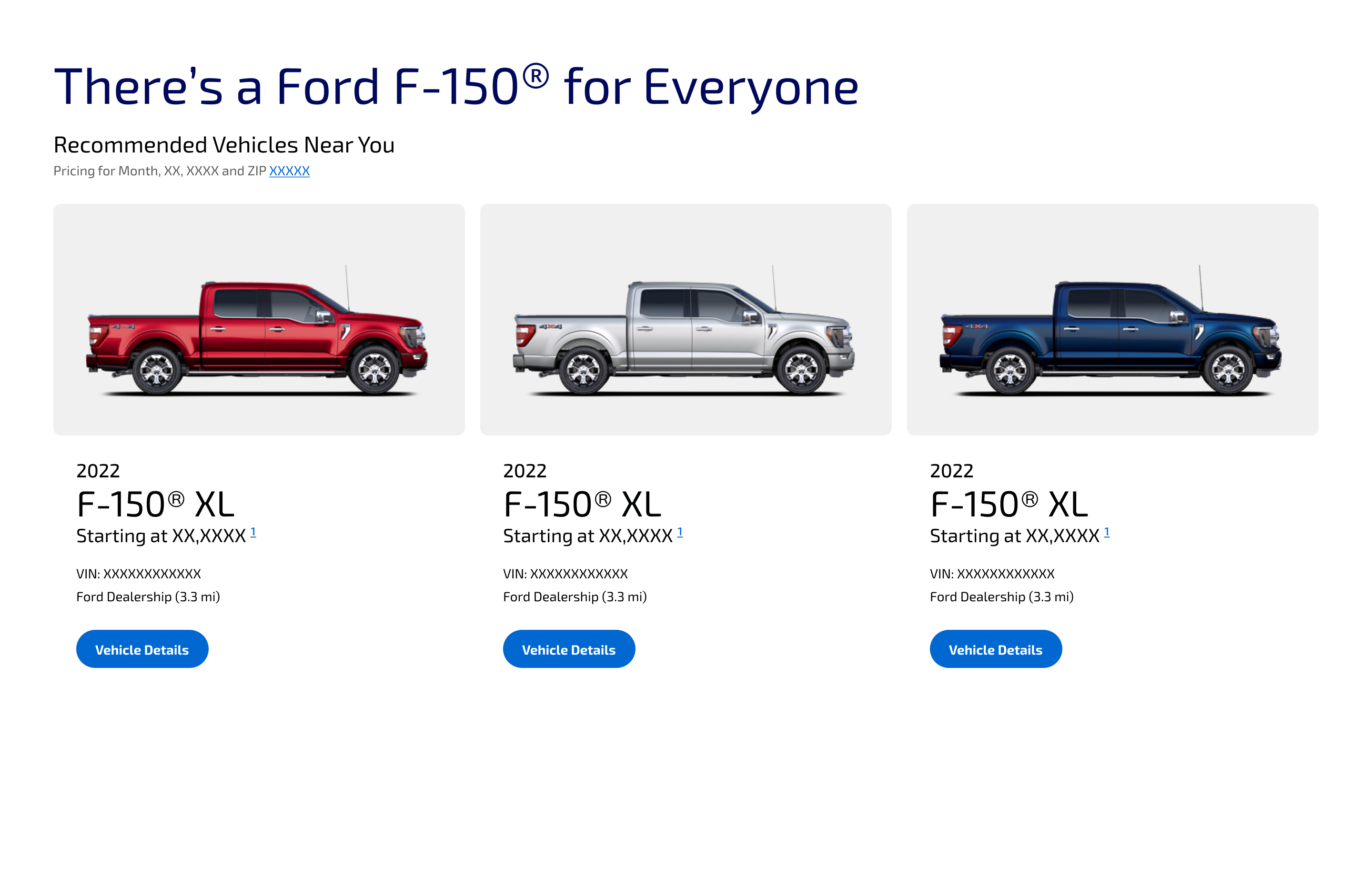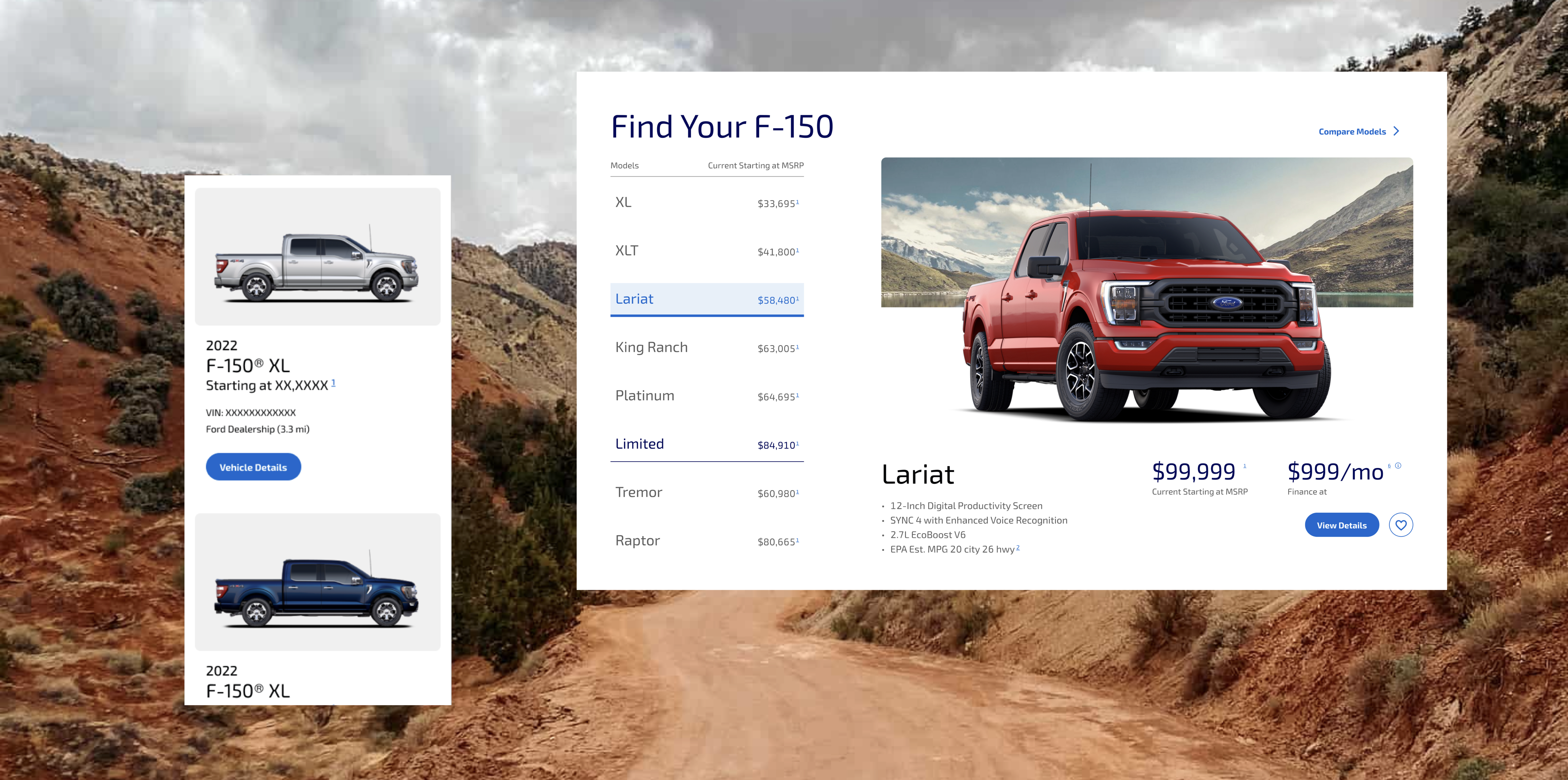 We developed a modern and unified design system by standardizing patterns and components that could flex across markets. We kept the Ford experience recognizable across touchpoints, but still left room for flexibility and innovation.