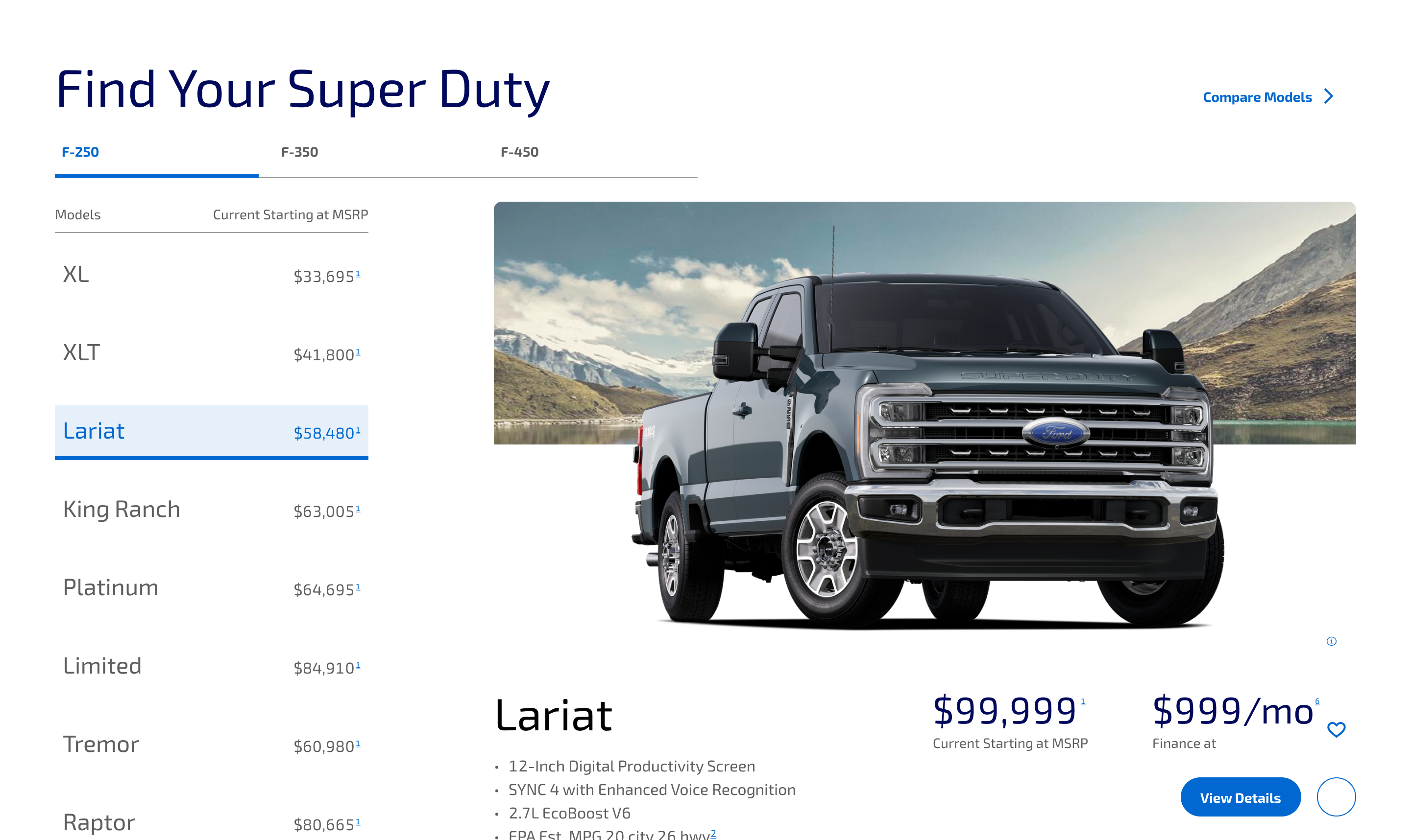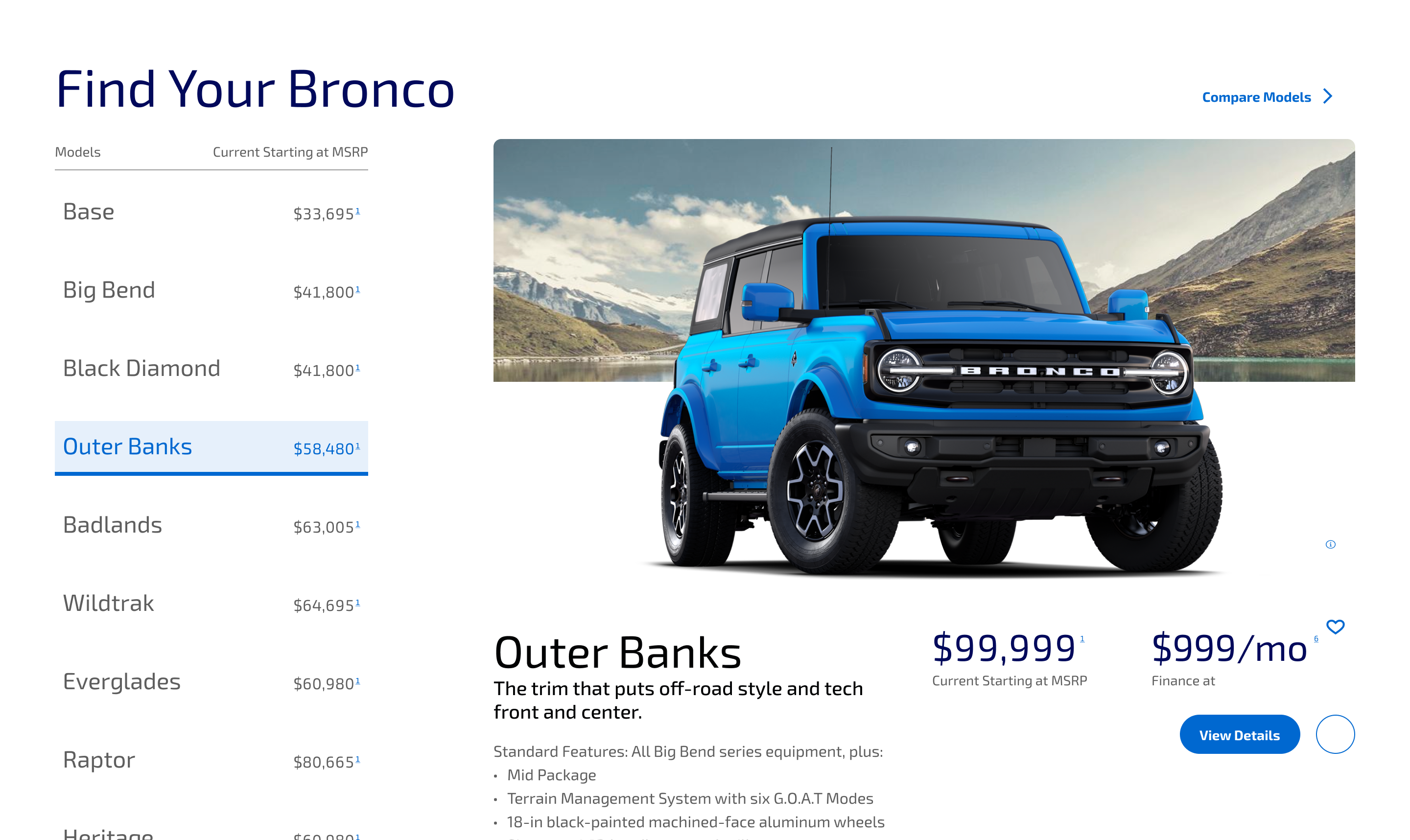 - Restructured layout to easily compare trims and pricing in one viewport, eliminating repetitive back-and-forth clicks