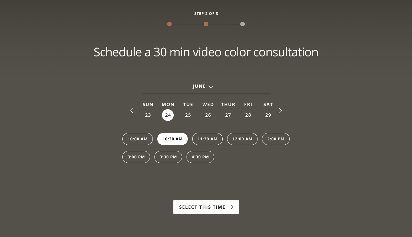 The most recent designs include a 3-step process to successfully schedule a virtual consultation followed by a confirmation page that encourages customers to take a look at other color advice resources provided by Sherwin-Williams.