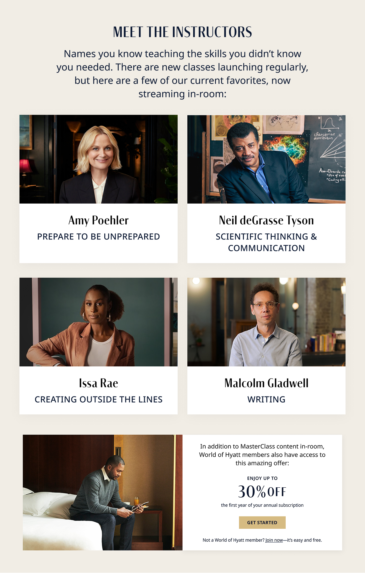 Guests at participating locations have access to in-room MasterClass lessons, as part of the first-ever hospitality collaboration with the online education subscription platform. The amenity gives guests a way to “learn and grow through curated content” while on vacation with classes on health and wellness, arts and entertainment, business, culinary skills and more.